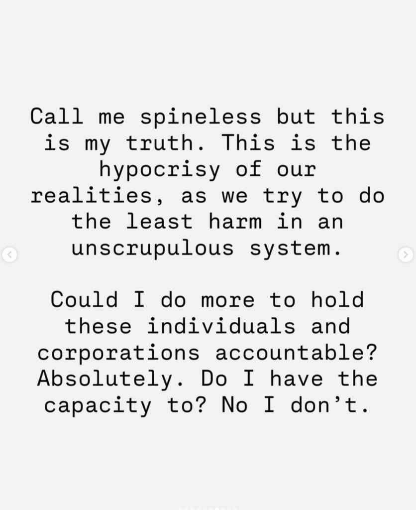 Now the parts I do agree with, how not everyone can or should drop everything at once because other people have the ability to do so does not excuse anyone from just accepting terrible conditions, to lie to ourselves that “we don’t have capacity” to at least find small ways to get free. It goes beyond holding someone else accountable, its about you. Can you hold yourself accountable to demand being treated like the talented human you are?